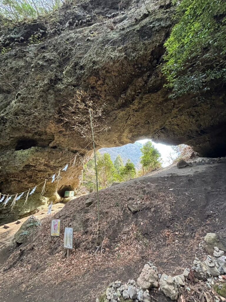 石段を登っていくと上に風穴が。